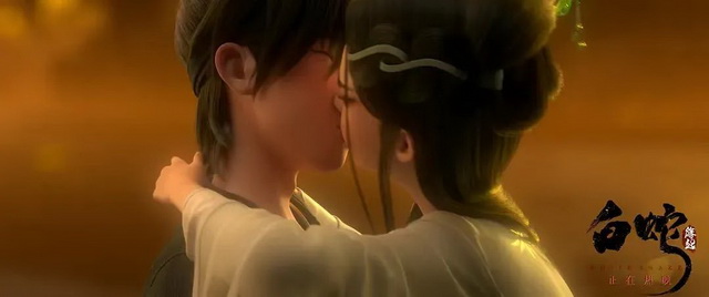 比《秦时明月》更进一步的是,《白蛇:缘起》甚至在剧情当中正儿八经地谈起了恋爱。尽管《秦时明月》中,不少人物之间也有感情线,但尤其在早期的几部作品里,玄机科技一直呈现地非常克制与收敛,归根结底还是得考虑到家长群体的感受。
