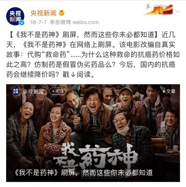 甚至,电影引发的讨论盖过了电影本身,电影的社会性超越了娱乐性,《我不是药神》之后推动了国家抗癌药降价保供等社会措施的施行,在电影艺术的人文关怀层面,为现实主义题材影片打了个样。