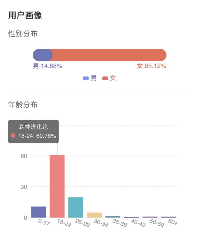 而做到第七季的《名侦探学院》,也证明了这群嘉宾所能带动的粘性用户群的稳定——根据艺恩数据,《森林进化论》的用户画像中女性占比高达85.12%,18-24岁的用户占到60.76%,粉丝属性相当明显。