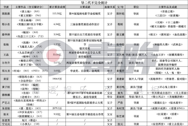 相较于父母从事电影工种,子女做了导演,这类泛化的影二代,本文探讨的是狭义范围内的“导二代”,即两代人都是导演的现象。