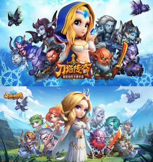 这一时期最流行的品类,已经从休闲小游戏转为卡牌,而其中的代表性产品依然没有摆脱抄袭争议。先有把品类上限拉高到月入五千万的《我叫MT》被指抄袭日本游戏《智龙迷城》,后有莉莉丝的《刀塔传奇》被暴雪告上法庭,不得不改名为《小冰冰传奇》。