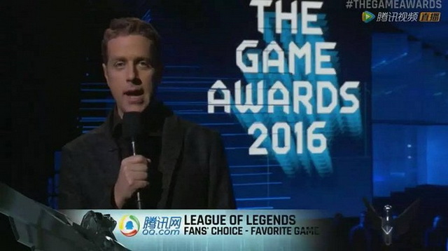 2016 年 TGA 上,主持人口播了《英雄联盟》获得「粉丝选择奖」的消息