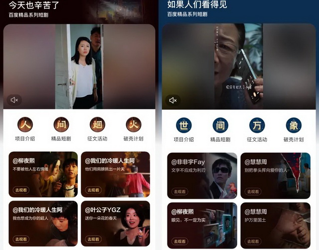 百度也同样注意到短剧需要与当下用户及当下的价值观相贴近,今年开发烟火气短剧系列IP《今天也辛苦了》与《如果人们看得见》,并在剧中融合最新AI元素,为短剧增加别样风味;