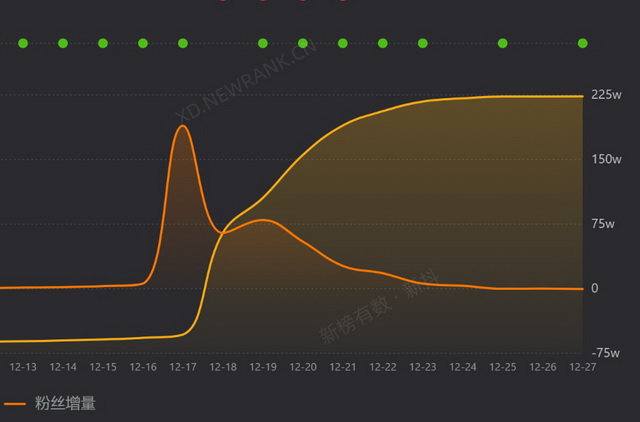 于文亮人设崩塌后,再也没有开启直播,而是和另一位颜值网红孙岩谈起了恋爱;至于最近爆火的闻会军,根据新榜数据显示,三大账号均在17日,也就是爆火当天后粉丝增量直线下降,主力账号“闻神”,从12月25日已经开始出现“取关潮”。