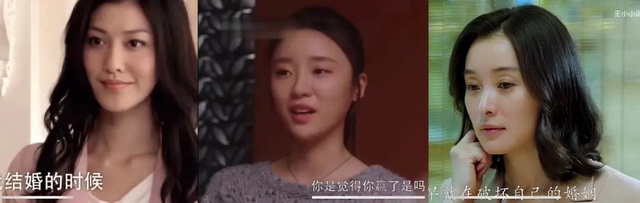 此时期的“小三”有两个特点。在外形上,这些“小三”或妖艳或清纯,总之能满足男性幻想下对于“小三”的刻板印象;其次,在形象塑造上,这些“小三”开始出现同质化趋势,主要负责推动男女主角关系进展,或者提供狗血戏码,刺激观众眼球。