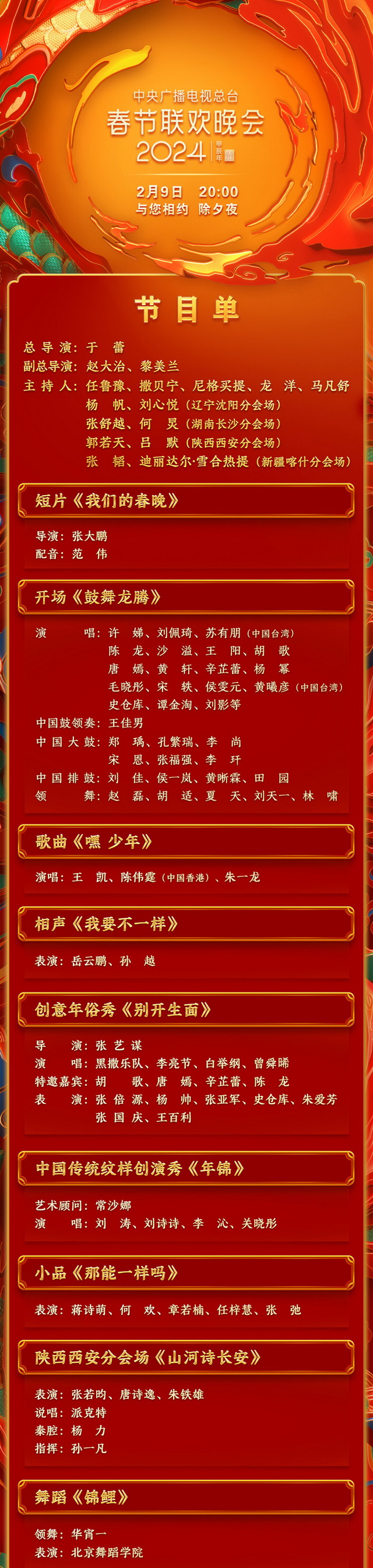 中央广播电视总台《2024年春节联欢晚会》节目单