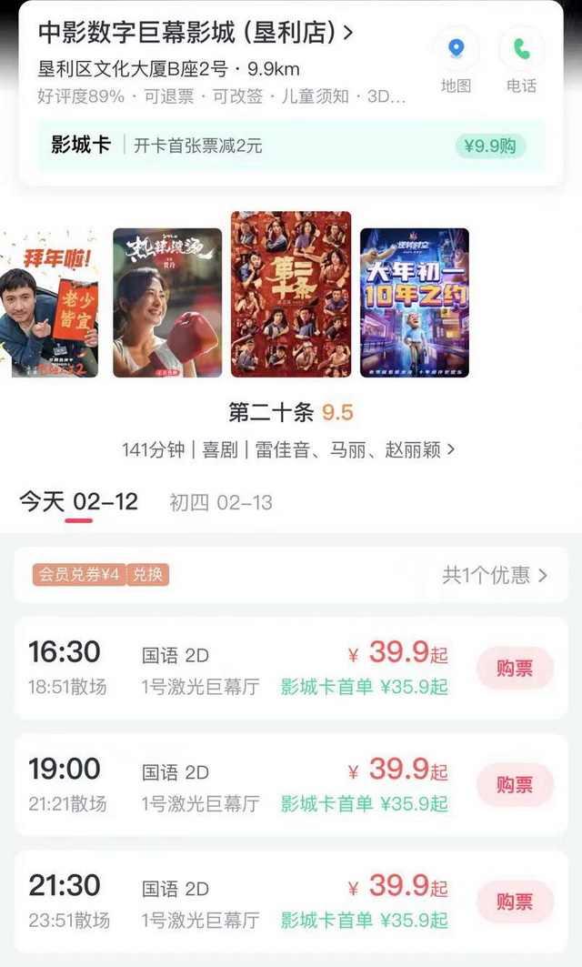 “今年吃了预售的红利,平台补助19.9票价吸引了不少观众入场,“梁经理表示,他是最早开预售的,售卖情况不错,春节的时候他还往下降了些票价,“我们吸取了往年的教训,选择了一个亲民的价格。不能再涨价了,否则市场还会再给一巴掌的。”