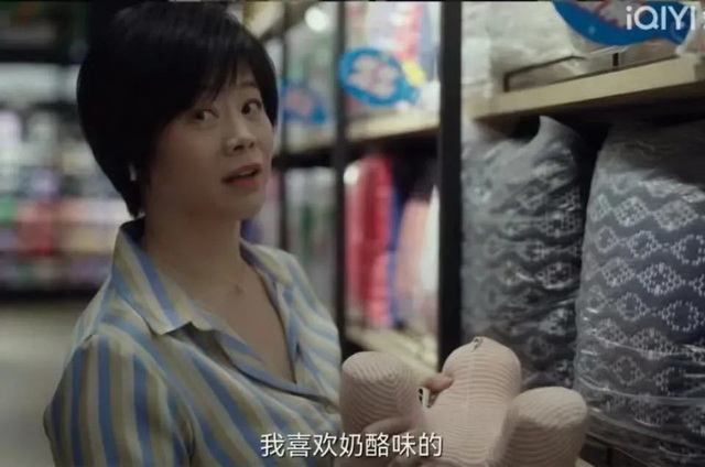 这场戏设计得还是有点夸张的,感觉氛围已经到这儿了,想往前再递进一下。原剧本只有水果味儿,现场走戏时我突然想到,只回答水果味儿是不够劲儿的,我要来一个更有趣的、更有力量的。当时就想到一个奶酪味儿,都是吃的,既不违和,放在一起感觉又完全不同。