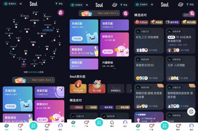 soul靠语音匹配起家,靠元宇宙业务迅速壮大。打开soul的页面,最早期的“语音匹配”“灵魂匹配”已经扩充为“群聊派对”“萌面匹配”“soul游乐园”等多重服务,现在的soul已经不适合“和陌生人倾诉心事”,更像一个线上社交版微博。