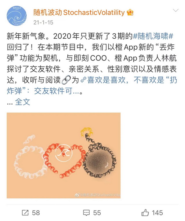 精细化、垂直化的进程远未结束。2019年,一款名为“橙”的社交软件显示在开发中,其开发者为宁波意赋科技有限公司,公司监事罗铮亦是即刻母公司上海若友网络科技有限公司监事。