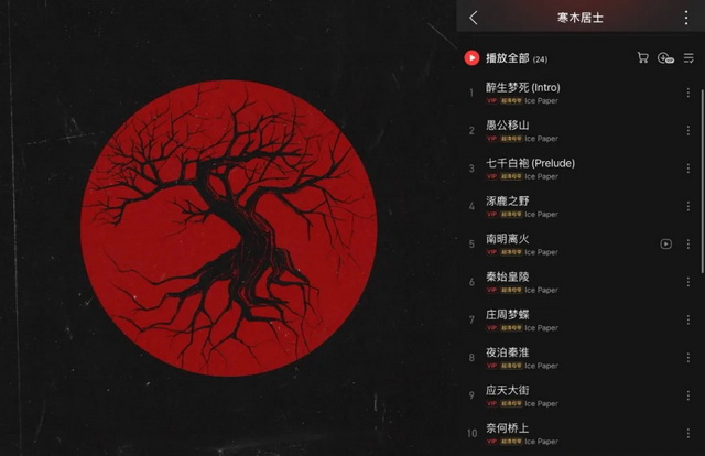 比如专辑《寒木居士》中大量引用了愚公移山等神话故事,来隐射当代的社会现象。《金陵九歌》对应的则是屈原的九歌,也融入了他对于南京这座城市的情感。《水之幻想》讲述的则是人类文明的进程,受《刺客信条》《神秘海域》等游戏的影响,他把游戏采样融入歌曲伴奏中,把整张专辑变成一个英雄带领大家通关的过程。