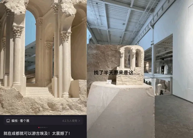 这种情况直到现在也依然存在。6月,一则关于成都新展的笔记收获千人点赞,破败又恢宏的古希腊神庙首图吸引了众多网友前去打卡,结果到了现场发现图片中的古希腊神庙只是一个放在桌子上的小雕塑,宏大的不是神庙,是相机的镜头特写。