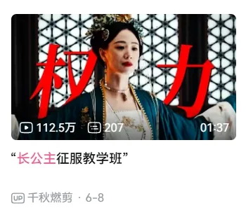 而上半年另一部爆款剧《墨雨云间》在B站同样大火,剧中充当反派的长公主,在剪辑视频里可是绝对的热度担当。长公主的高燃混剪,同样收获了超百万的播放量。不少UP主产的“粮”还被搬运到站外向路人推荐,UP主的二次创作俨然已经成为了影视作品新的血肉。