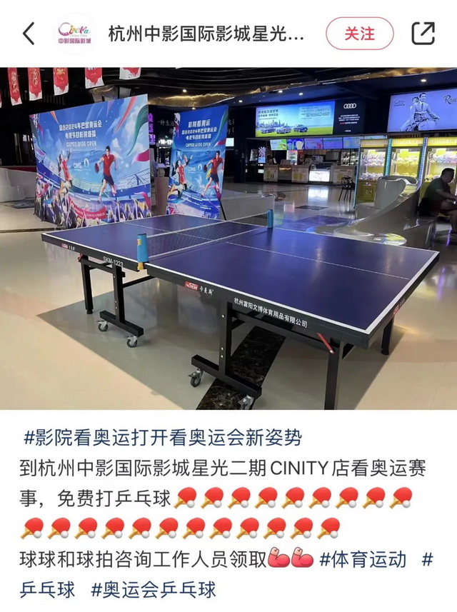 社交网络上,不少影院纷纷晒出自己的“服务”,有的提供蛋糕零食,有的甚至直接在影院架了张乒乓球桌,供观众打球。