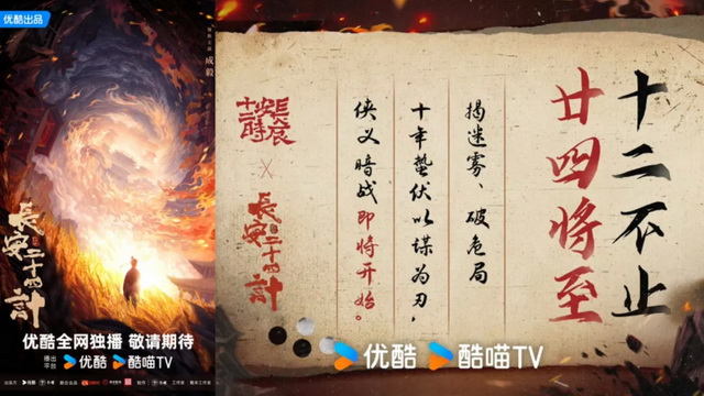 由成毅主演的展现唐代历史风云的古装巨制《长安二十四计》,某种程度上是对“大唐赛道”的延续。优酷在2019年推出的《长安十二时辰》可以视作这一赛道的先河,之后有大量围绕大唐背景的悬疑作品推出,是一个佳作频出的潜力赛道。
