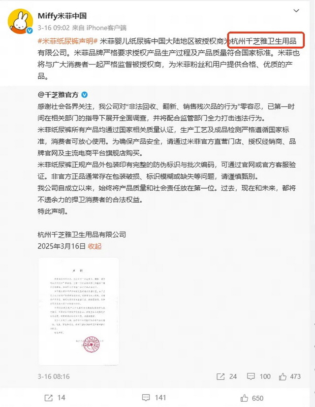 不过,今年315晚会,米菲纸尿裤因涉嫌劣质卫生巾、纸尿裤被曝光,千芝雅正是其授权生产商;而千芝雅也曾是浙江朵薇公司的大股东,只不过相关股份已于今年3月20日全部退出完毕。这一背景无疑为朵薇的“出道”蒙上阴影。也意味着,在“前科”之下,朵薇更需要拿出实打实的品质来“洗清”。