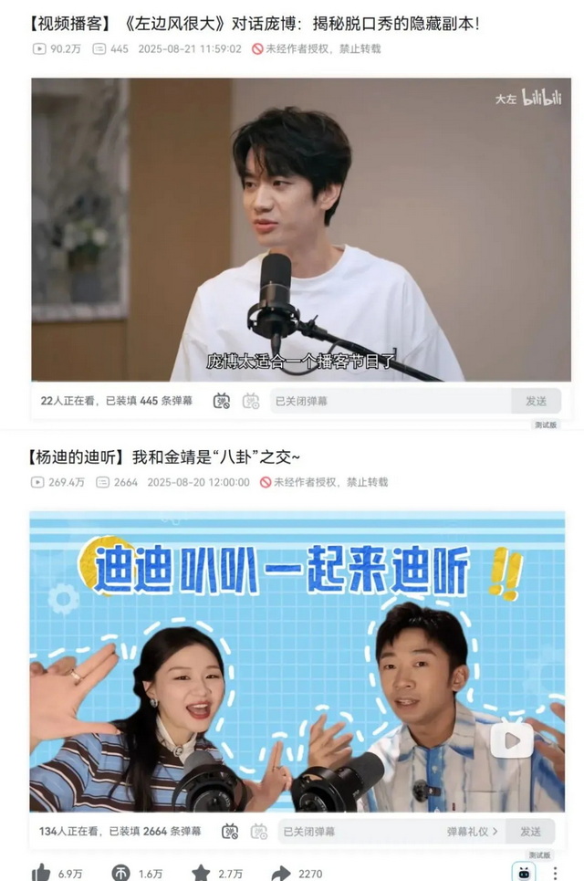 此外,众多媒体类、科技类播客也陆续入驻,覆盖多个领域,使B站视频播客生态愈发丰富。