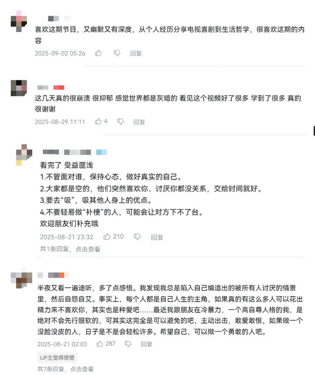 此外,B站用户对于优质内容的追求和认可,使得视频播客这种深度内容形式能够迅速找到受众,观众还会通过弹幕对嘉宾观点进行实时讨论,在评论区分享自己的感悟,增强了用户与内容、用户与用户之间的连接。
