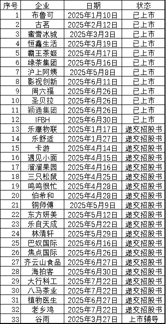根据蓝鲨消费统计数据显示,自2025年以来,包括蜜雪冰城、古茗、影视创新等12家消费类企业已经在A股和港股成功上市,此外还有老乡鸡、大行科工、林清轩、卡游、巴奴国际等20家消费类企业正在IPO排队,抖音顶流“谷雨”等消费类企业也宣布启动IPO进程。