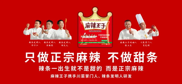 韦鉴峰与麻辣王子进行了长达半年的市场调研,认为麻辣口味是最大的机会。从辣条的起源来看,湖南平江最初的辣条就是麻辣口味,甚至消费者将“辣条”叫做“麻辣”。辣条传到北方后,卫龙为了迎合当地的消费习惯,也为了全国化推广,就在原本产品的基础上“减麻、减辣、加甜”,引领了“甜辣”风潮,其他厂家一窝蜂模仿,结果造成了辣条的“同质化”。