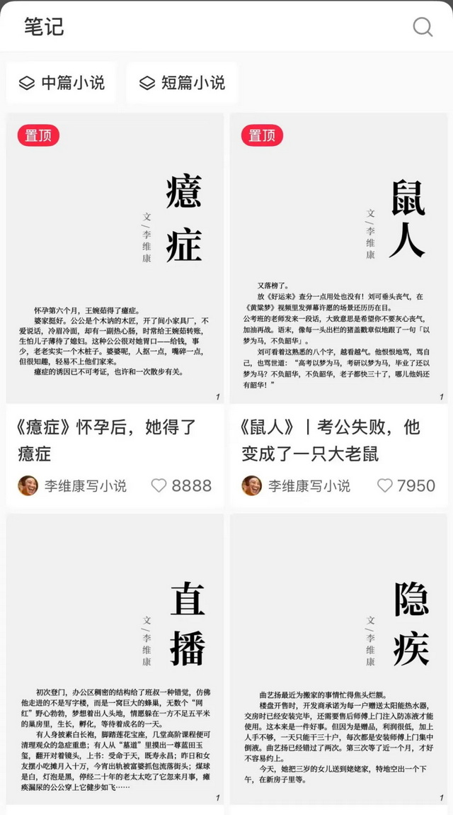 喜欢写偏严肃题材短篇小说的李维康,同样是为寻求阅读反馈而来。之前他曾多次向文学杂志投过稿,但石沉大海,今年上半年,他尝试在公众号、豆瓣阅读和小红书上同步更新作品,其中小红书的互动交流感最为突出。