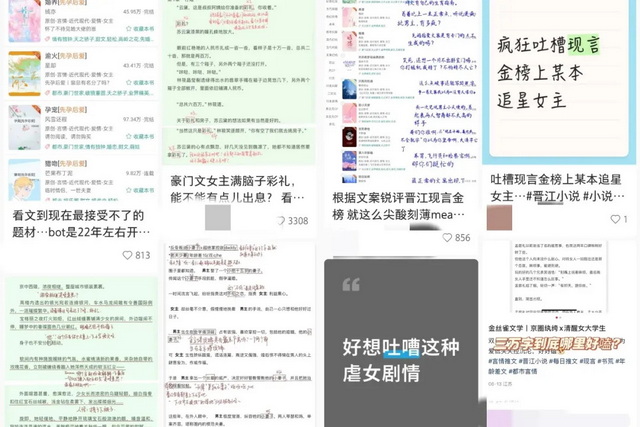 内容层面上,晋江女频虽然也在不断迭代进化,但诸如传统的巧取豪夺、先婚后爱、冷面霸总,已经被网文逐步淘汰,劝退了部分创作者和读者。小红书上的“晋江现言吐槽bot”等系列帖子,将不少晋江叙事套路定性为性骚扰、拐卖妇女。