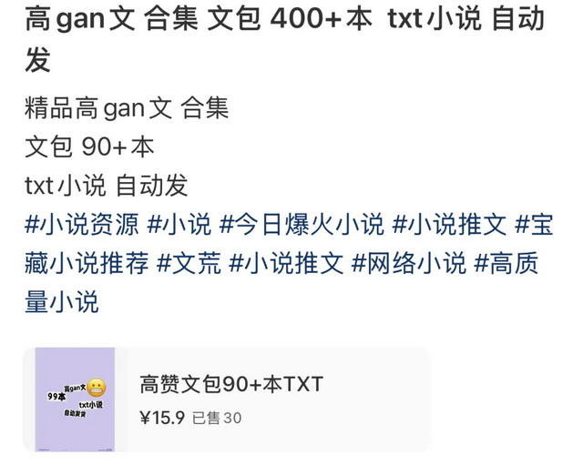 毒眸注意到,小红书单篇小说定价普遍在0到2块,集合打包了多篇同类短篇的“文包”则在5到20块不等。同时这种打包售卖的模式还滋生了盗版,不少文包被整理成合集,以更低的价格流通。