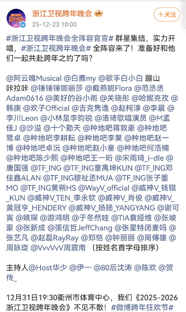 时代少年团、华晨宇、檀健次、王嘉尔、王鹤棣、王心凌、黄景瑜、张凌赫、黄子韬&徐艺洋、李晟、孟子义、沈月、张婧仪、章若楠、陈楚生、苏醒、王星越、吴宣仪、张予曦、徐良、袁一琦等