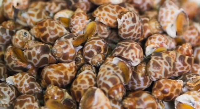 要做出一锅地道的香辣花螺,食材的挑选是第一道关卡。万龙对花螺的要求向来严苛,他总说,鲜活的花螺是美味的根基。挑选时,他会轻轻触碰花螺的外壳,那些能迅速收缩螺肉、外壳完整无破损、掂起来沉甸甸的,才是上乘之选。新鲜的花螺外壳带着浅褐色的花纹,摸起来光滑细腻,透着海洋的清润气息。处理花螺更是细致活儿,先用清水加少许盐静养半天,让花螺吐出体内的泥沙,再用刷子仔细刷洗外壳的褶皱,确保每一颗都干干净净,这样吃起来才不会有牙碜的困扰,也能更好地凸显花螺本身的鲜甜。