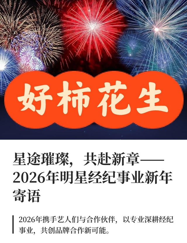 岁月更迭,万象更新。当2026年的第一缕晨光穿透云层,洒向这片充满希望的土地,我们站在时间的交汇点,回望波澜壮阔的2025,展望机遇涌动的2026。在这辞旧迎新的时刻,我们满怀感恩、笃定与热望,向所有同行者致以最诚挚的新春祝福,并郑重写下这份属于明星经纪事业的新年寄语。