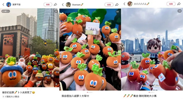 到了线下,大家也习惯带着“卜卜”到处旅行打卡,将“卜卜”当作陪伴自己出行的朋友。因此,TA是一种近似于“共创”的载体,这种共创并非体现在产品本身的设计上,而是体现在TA所承载的情绪上——“卜卜”所代表的情绪关键词,是“治愈”和“陪伴”。