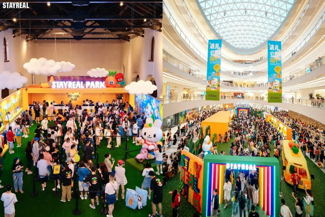 在线下空间的搭建上,最早诞生的是STAYREAL PARK。以“卜卜”和MOJO FAMILY为核心IP的STAYREAL PARK遇见公园,自2023年5月在北京开启,至今已经走过北京、上海、广州、深圳、香港等近20个城市,成为年轻人“轻社交乌托邦”。