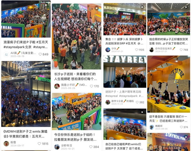 比如,现在已经成为固定环节的“送别PARK”活动,就是用户自发形成的一种仪式,在每一站STAYREAL PARK结束时,大家都会聚集到公园里,带着自己的“卜卜”和其他“朋友”,一起唱歌、拍照,还会设计特别的歌单,给每个城市都留下独特的回忆。