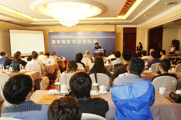 2013年FIRST创投会在青海宾馆举行,台上是青年导演郝杰(图源:China Daily)