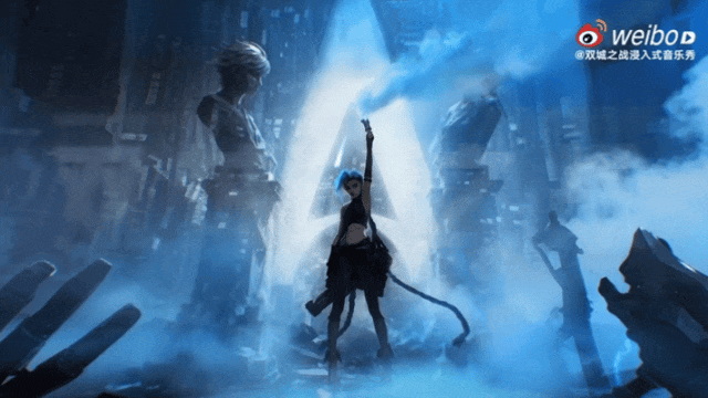 音乐秀中第一幕重场戏,对应着《双城之战》动画的第一集,是蔚带着金克丝与两位发小在上城引发了爆炸,这个事件也打破了上城与下城之间微妙、脆弱的平衡,加速了双城之间的矛盾与后续发展。