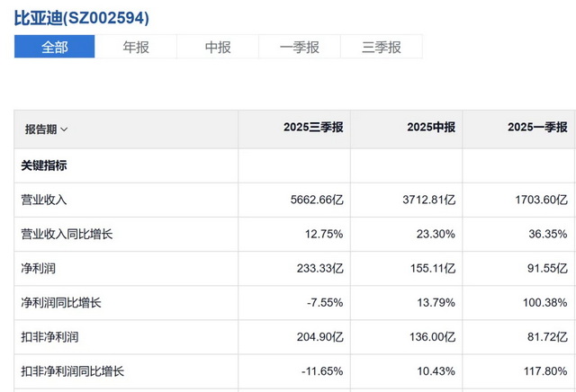 头部车企凭借垂直整合与规模效应实现稳健盈利。截至2025年三季度,比亚迪营收5662.66亿元,净利润233.33亿元,销售毛利率维持在17.87%的高位。