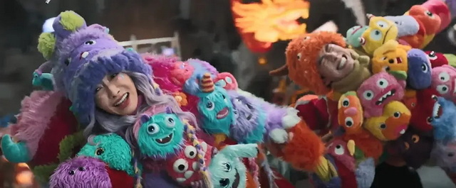 于是乎,许多梦境以大家更为熟悉的经典迷影元素呈现出来,比如老白的梦境致敬港片《古惑仔》。但在熟悉的同时,叙事过程中必须做反刻板印象的微调,才能让“吃过好的”的观众们找到新的趣味。比如,枪里打出来的不一定是子弹,也可以是糖果;穿越进别人的梦境里不一定是机械降神,也可以是被一枪爆头的NPC,或者是广告牌上的二维卡通小人;做古惑仔“一心为社团”的时候,想当的不一定是老大,也可以是老大背后小狗。