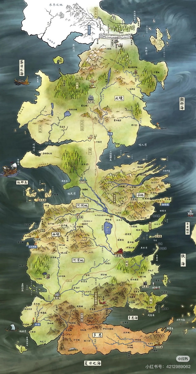 《权游》维斯特洛大陆地图(图源:小红书@momo)