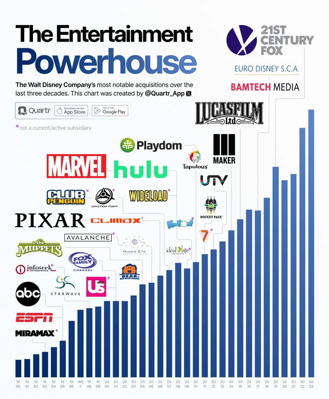 1990年代起迪士尼的重要收购一览
