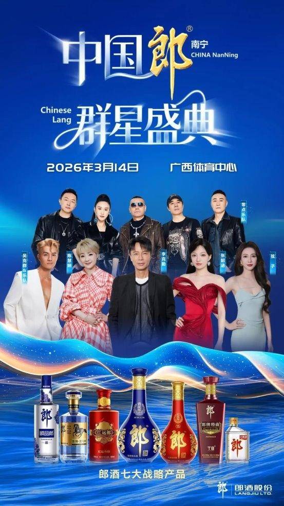 2026年3月,郎酒在南宁举办“中国郎·群星盛典”,李克勤、张韶涵等艺人登台,3.4万人到场,2000万人次线上围观。紧接着,盐城站同样火爆,张韶涵、李克勤、陈慧琳、水木年华等轮番登台,三万人齐声合唱。南通、兰州等城市也已定档。