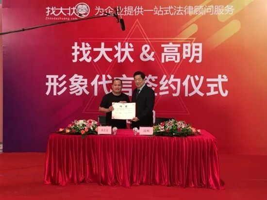 “找大状”作为我国企业法律服务电商领先品牌,创新性推出“互联网+ 法律”运营模式,目前已拥有海量合作律师资源,服务网点覆盖全国八十余座重点城市,服务客户逾万家。为了使“找大状”品牌的影响力进一步扩大,决定邀请高明老师担任品牌形象代言人,旨在为公众塑造沉稳正面的品牌形象。幸运的是,高明老师接受了找大状抛出的橄榄枝。