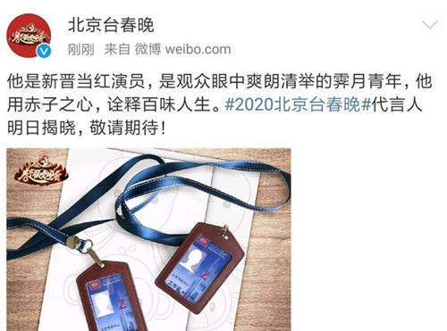 12月19日,肖战杨紫北京春晚登上热搜,12月19日上午,北京卫视官博正式发布肖战杨紫的人型头影并配文称“她是活泼灵动的北京小妞,贯穿着大家记忆中的童年,一路成长,演绎多元角色。他是新晋当红演员,是观众眼中爽朗清举的霁月青年,他用赤子之心,诠释百味人生。”