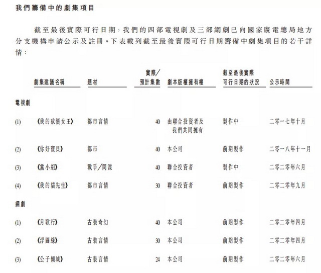 从本次募资投向来看,稻草熊亦主要围绕剧集制作,意图提升其核心竞争力。招股书显示,本次募资金额将主要用于剧集制作,包括《公子倾城》、《月歌行》和《浮图缘》等预期于2021年或2022年播映的剧集。