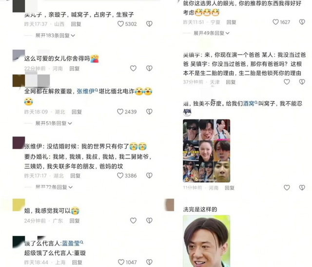 这种不满随着张维伊表示自己创作遇到了瓶颈,希望有个孩子来让他来体验父亲的身份,让45岁的董璇高龄产子时达到了顶峰。之后,网友开始细节化地模仿张维伊的动作神情,记录他的语录,跑去他的社交媒体账号下为董璇鸣不平,甚至,连节目中,张维伊随时佩戴的耳机也扒到了品牌,有网友跑去找商品客服进行确认。目前,节目已经将耳机打码处理。