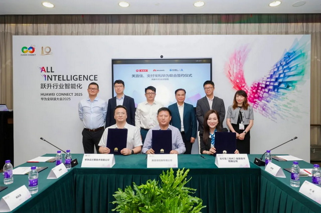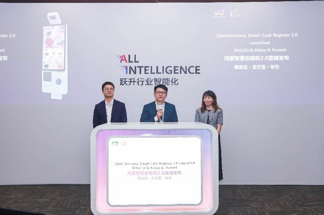 这不过是美宜佳全店智能体系的一个应用场景。在近日召开的华为全联接大会2025上,美宜佳隆重推出了新一代鸿蒙智慧收银机2.0,华为云与支付宝作为核心合作方共同参与发布仪式,同时三方展开鸿蒙生态全店智能体系签约仪式。