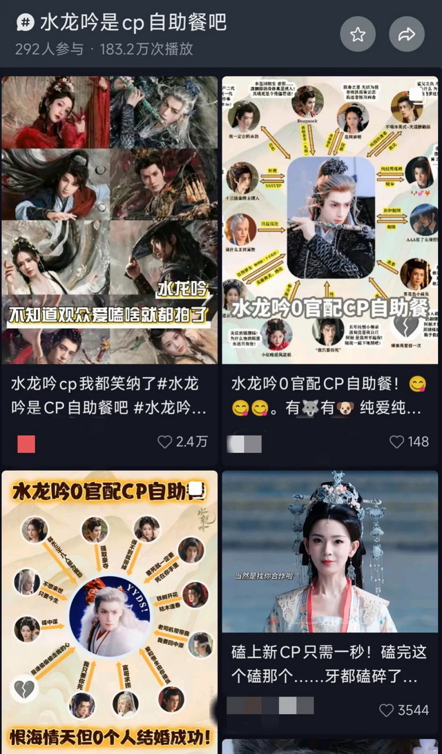 《天地剑心》将当下时间线1000年前的人物王权无暮改为剧中的男二、男主幼时封闭世界里唯一的朋友,两人的成长、与父辈的矛盾几乎是镜像的,目的感不可谓不重;《暗河传》苏昌河将苏暮雨称为“我的傀大人”,为让苏暮雨通过试炼不惜以命自戕,“兰因絮果”版CP线炉火纯青;《水龙吟》唐俪辞与男配们的CP组合就更多了,堪称“全员适配的CP自助餐”,与沈郎魂强者相惜,与池云则是冰山大佬和忠犬小弟的搭配,总之万人迷大男主的CP不拘性别。