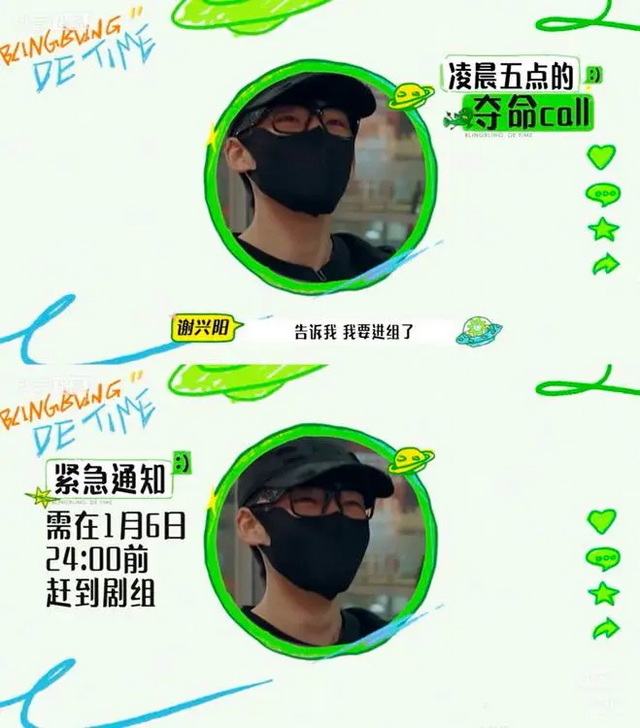 当时谢兴阳还在参加综艺《闪亮的日子》拍摄