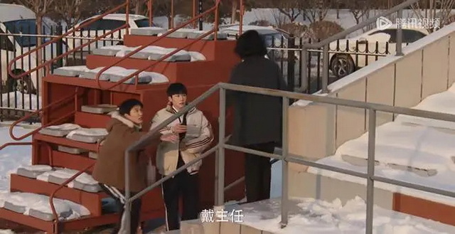 比如第一集戴主任逮到赵左右和罗爱文吃麻辣烫的那场戏,剧本里写的是戴主任充满威严地走下楼梯,可结冰的梯面让戴主任抓着扶手都只能勉强踱步下来。贺羽端想了想,说,就这样颤颤巍巍地走下来,赵左右和罗爱文还赶紧上去扶她,这样反带出了些幽默。