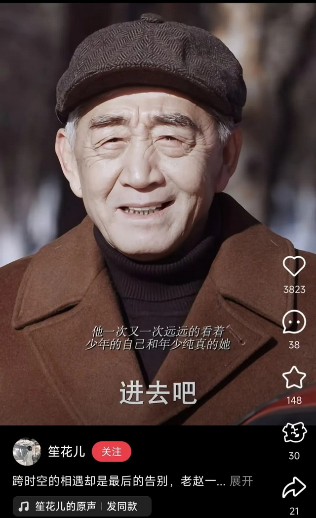 小红书上不少高赞视频,源自一场跨时空的告别。追随荀未来的脚步穿越到2008年的舒图,骂完荀未来和赵左右后,决定返回现世。而老年的赵了一路在雪地里奔跑,紧赶慢赶,才终于来得及哭着喊出年轻恋人的名字,郑重地和她说一句再见。