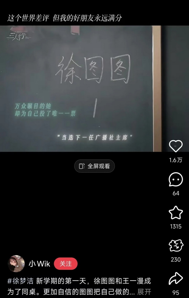《三人行》里的“八中群像”,也打动了许多观众的心。被质疑作弊的赵左右在办公室重写卷子时,办公室外头是四颗担心的小脑袋。王一漫和徐图图的关系也完全没有按套路发展,在广播站竞选现场给徐图图投出唯一一票的,不是一直在鼓励她,夸赞她的男主赵左右,而是觉得她很特别、彼时两人还没说过话的王一漫。